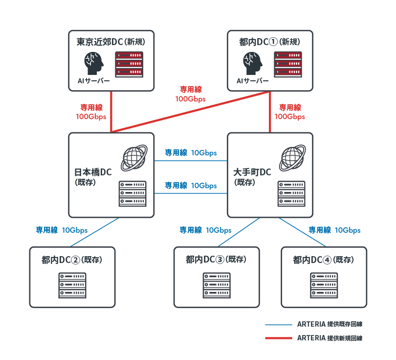 2023年5月には、AI活用の拡大と強化を目標に、新たなAI開発基盤を都内のDCに用意し、運用を開始。当初は10Gbpsの他社専用線を2本使用していた。しかし、運用開始から約2年半が経ち、新たな問題が生じてきた。